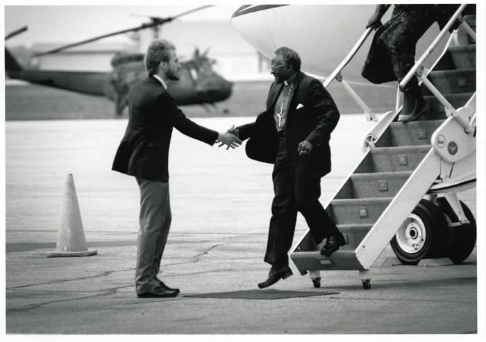 Archbishop Desmond Tutu, a central figure in the fight against apartheid, was arrested outside parliament while leading a protest march (one of many) against the death sentence of the 'Sharpeville Six'. Tutu was freed a few hours later. Reginald Sefatsa, Reid Mokoena, Moses Diniso, Theresa Ramashamole, Duma Khumalo and Francis Mokhesi were convicted for the 1984 mob murder of Sharpeville deputy mayor Jacob Khuzwayo Dhlamini. There was a general outcry, because they were convicted and sentenced to death on the doctrine of common purpose. Following several stays of execution, they were finally reprieved in 1991 when negotiations between liberation movements and government led to the release of all political prisoners.