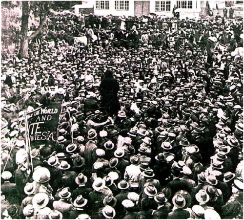 A general strike was organized by white trade unions in Johannesburg, South Africa, in 1922. This was in response to intensified exploitation of the miners, and a decision by gold-mining industry leaders to replace many white workers with black workers. The strike began in January 1922, and became an open rebellion against the state. Subsequently, the workers took over the cities of Benoni and Brakpan, and the Johannesburg suburbs of Fordsburg and Jeppe. The young Communist Party of South Africa (CPSA) took an active part in the uprising.