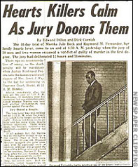 Police officers, challenged by Fernandez himself, searched the home and found the makeshift grave. Beck and Fernandez confessed readily in the belief that their lives were safe in the non-capital punishment state of Michigan. But they didn't count on being extradited to New York, where the electric chair was an option. At the last minute they attempted an insanity defense, but were unable to convince the jury.