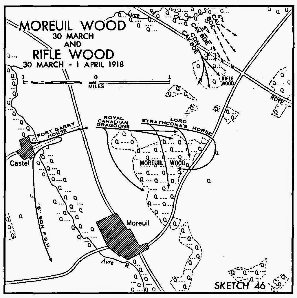 By the morning of March 30, the Germans had occupied Moreuil Wood, some 20 kilometers south of Amiens. On that day, an Allied force including British and Canadian cavalry and air brigades confronted the Germans head-on. By the end of the day, the Allies had managed to halt the German advance at Moreuil Wood, despite suffering heavy casualties.