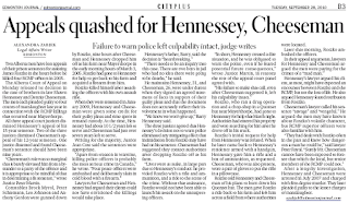 On January 30, 2009 Hennessey and Cheeseman were sentenced to 15 and 12 years in prison respectively, with credit given for their early guilty plea and for time served. Hennessey will serve approximately 10 years for his role, and Cheeseman will serve seven years. Both men appealed their sentences to the Alberta Court of Appeal, which dismissed their appeals and upheld their sentences in September 2010. The two co-accused applied for leave to appeal to the Supreme Court of Canada in April and May 2011, but the Supreme Court dismissed both applications on August 25, 2011.[15][16]
