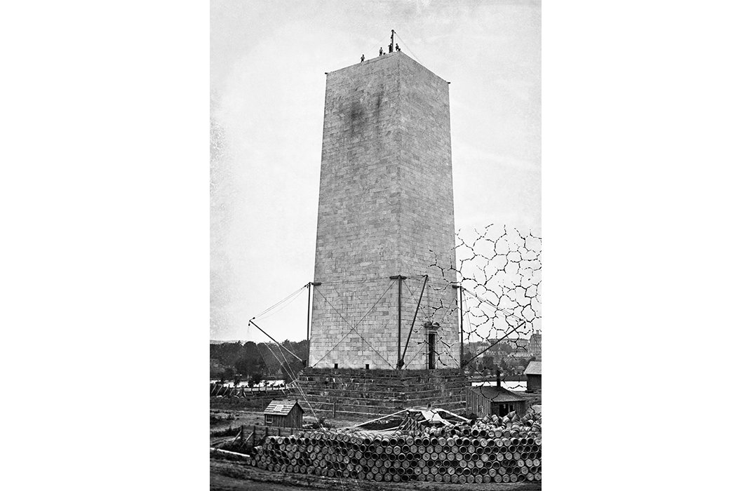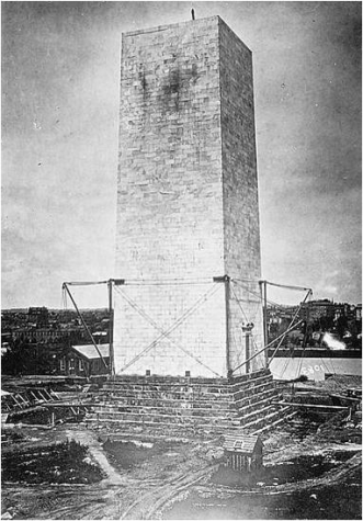 Six years later, with funds running low, construction was halted. Around the time the Civil War began in 1861, author Mark Twain described the unfinished monument as looking like a “hollow, oversized chimney.” No further progress was made until 1876–the centennial of American independence–when President Ulysses S. Grant authorized construction to be completed.