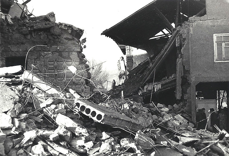 Spitak experienced near total destruction. Most of the structures in the city were either cheaply constructed or had brick or stone roofs and nearly all collapsed from the shaking. In Leninakan, Armenia’s second largest city with close to 300,000 residents, about 80 percent of the buildings failed to stand. The sheer scale of destruction overwhelmed the country’s ability to respond. Worse still, officials (controlled by the Soviet government at the time) delayed giving permission for rescuers and relief workers to enter the area. In fact, 10 days after the quakes, all foreigners were ordered out.