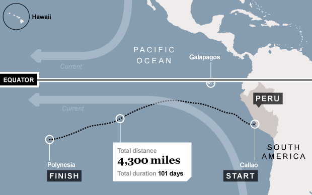 4,300-mile, 101-day journey from Peru to Raroia in the Tuamotu