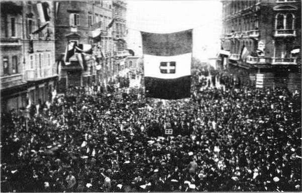 Negotiations over Italy’s demands, planned to last six days, opened on April 19, 1919, in Paris. Tensions flared immediately, as Orlando and Sonnino held firm in the face of fierce resistance from the other leaders, warning of civil war in Italy—driven by an increasingly radical movement of right-wing nationalists—if the country did not receive what it had been promised. On April 23, Wilson published a statement arguing that the Treaty of London must be set aside and reminding Italy that it should be satisfied with receiving the territory of the Trentino and the Tyrol, where the majority of the population was Italian. A day later, Orlando and Sonnino left Paris and returned to Rome, where they were met with a frenzied demonstration of patriotism and anti-Americanism. In a speech before the Italian parliament, Orlando urged his people to stay calm and stated that Italy’s claims were based on such high and solemn reasons of right and justice that they ought to be recognized in their integrity. The rabid nationalists, led by the charismatic poet and playwright Gabriele D’Annunzio, held meetings throughout the country, bitterly disparaging the Allied leaders—especially Wilson—and hinting at war if Italy’s demands were not met.